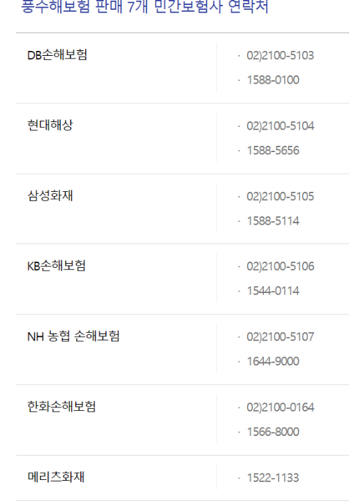 풍수해보험 가입이 가능한 7개 민간보험사 고객센터번호를 정리해 놓았습니다.