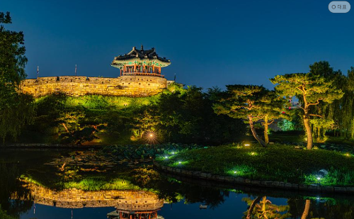 수원화성은 조선시대 정조가 건설한 계획도시로 유네스코 세계유산으로 지정되었으며 성벽을 따라 산책로가 매우 잘 조성돼 있고 화서문-장안문-화홍문-방화수류정-활터까지 이르는 성벽 길은 조명이 잘 돼 있어서 해진 저녁 산책하기 좋습니다. 선선한 저녁 바람을 느끼며 유유자적 거닐기 좋은 수원화성은 수원화성과 도시의 풍경이 어우러진 야경을 한눈에 담을 수 있으며 특히 화홍문 옆의 호수, 용연 언덕 위에 있는 방화수류정은 수원에서 숨겨진 데이트 핫플레이스로 유명합니다.