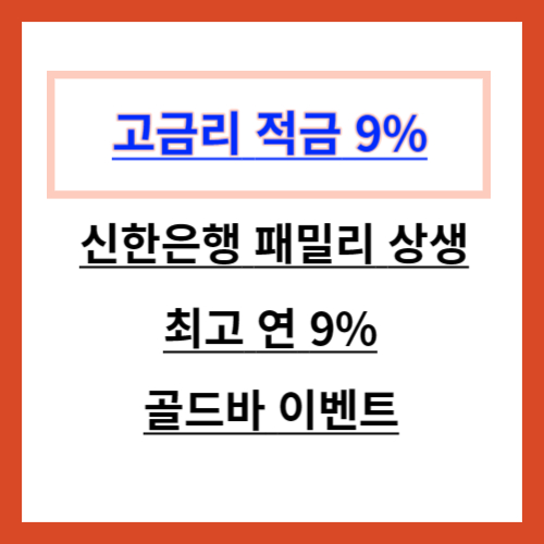 신한은행에서 9% 고금리 정기적금 특판 상품을 출시하였습니다. 저출산과 인구 고령화 등의 인구문제 극복을 지원하기 위한 '패밀리 상생 적금'으로 개인고객의 상황에 따라 기본금리 3%에 우대금리 최고 6%를 더해 연 9%의 금리가 적용되는 상품입니다.